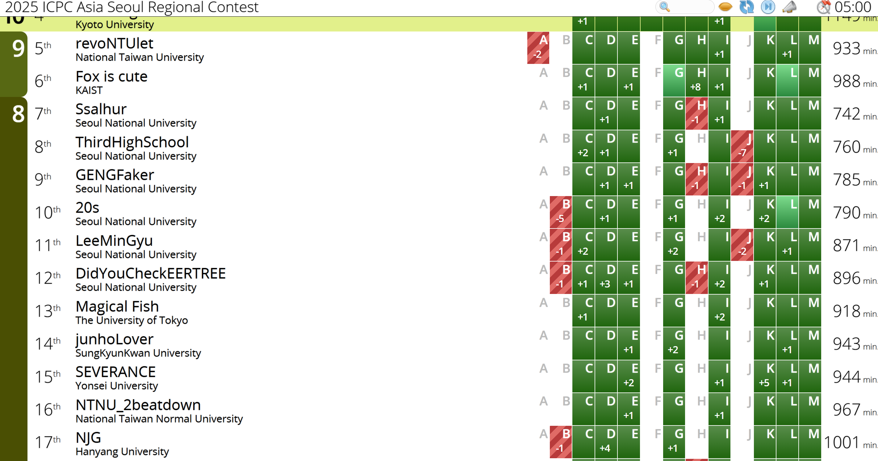 또한, 팀연습 때 퍼포먼스가 상당히 들쭉날쭉했다. 월파급 퍼포먼스를 내는가 하면, 아챔 진출을 못하는 퍼포먼스도 많이 냈었다. 대충 확률이 반반이었기에, 서울 셋이 어떤 문제가 나오는지가 중요하다고 생각했다.